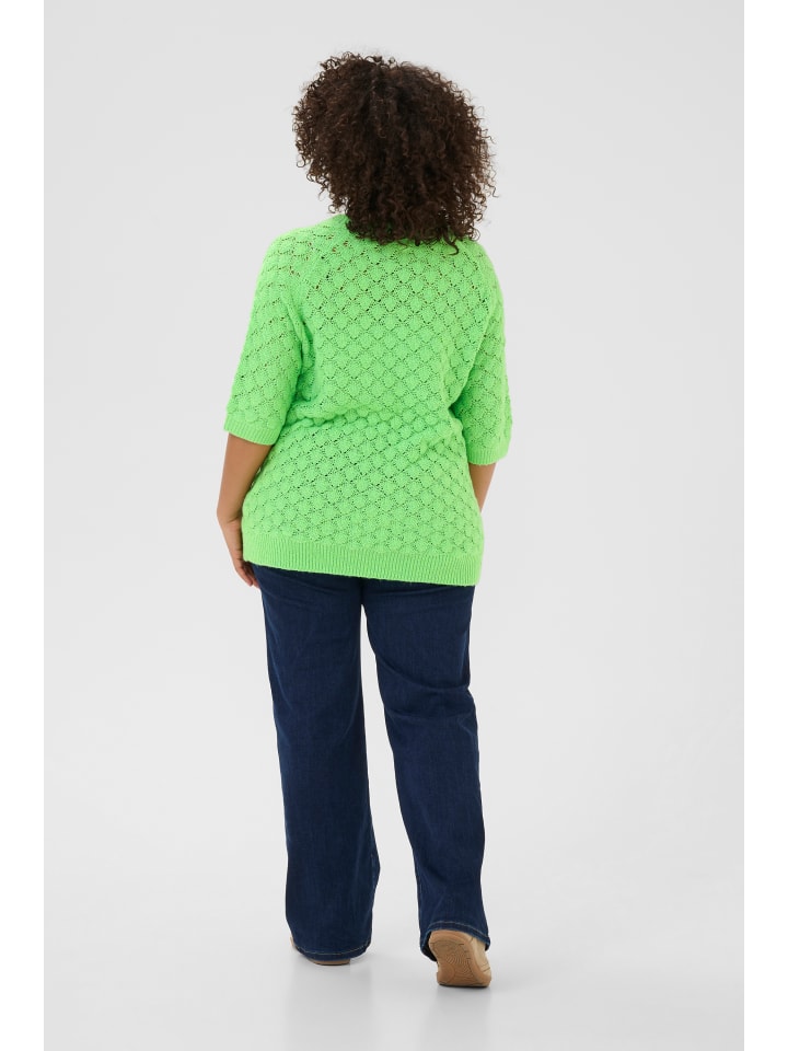 Этот трикотажный свитер с короткими рукавами сочетает в себе удобный свободный крой, структурный узор вязки и классический круглый вырез горловины. Универсальный и идеально подходит для повседневной носки.
