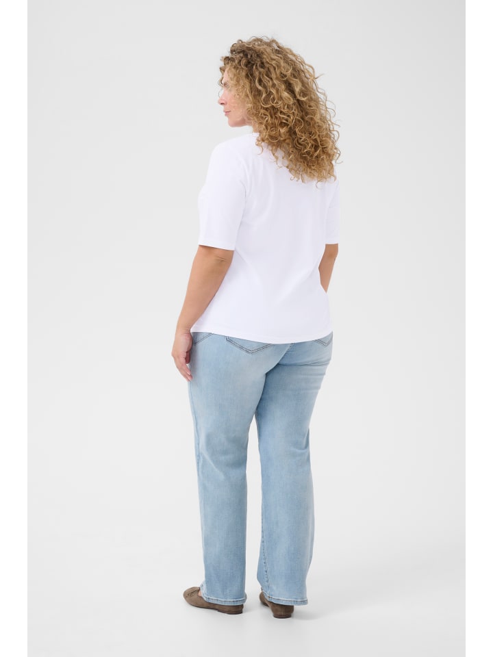 Футболка с декоративной закруткой, свободным кроем, круглым вырезом и рукавами до середины бедра. Удобная модель на каждый день и позволяет создавать разнообразные образы.