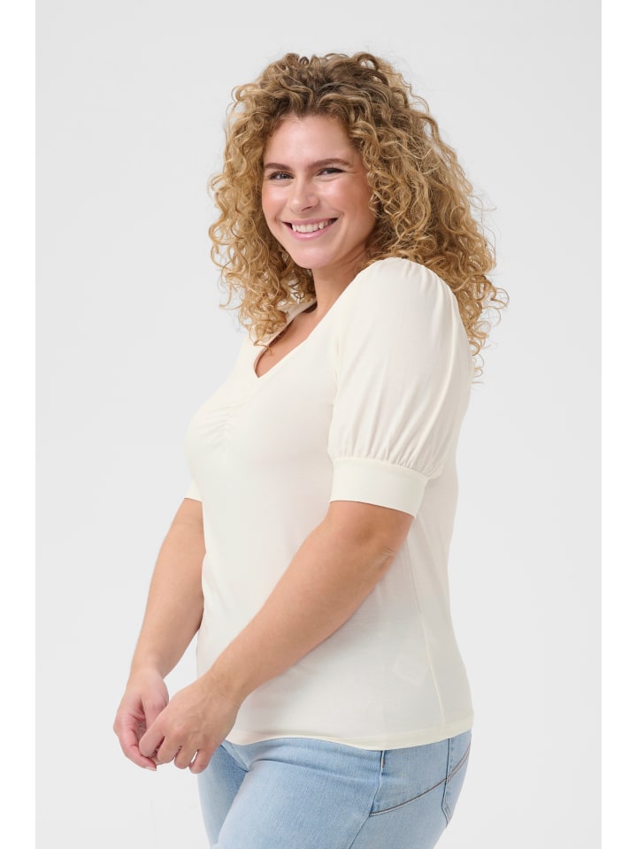 Женский топ с элегантным квадратным вырезом и сборками спереди. Мягкий, эластичный материал и свободный крой. Рукава до середины бедра для создания универсального образа.