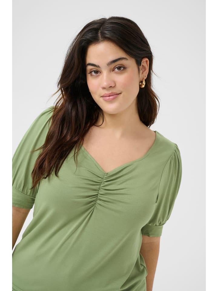 Женский топ с элегантным квадратным вырезом и сборками спереди. Мягкий, эластичный материал и свободный крой. Рукава до середины бедра для создания универсального образа.