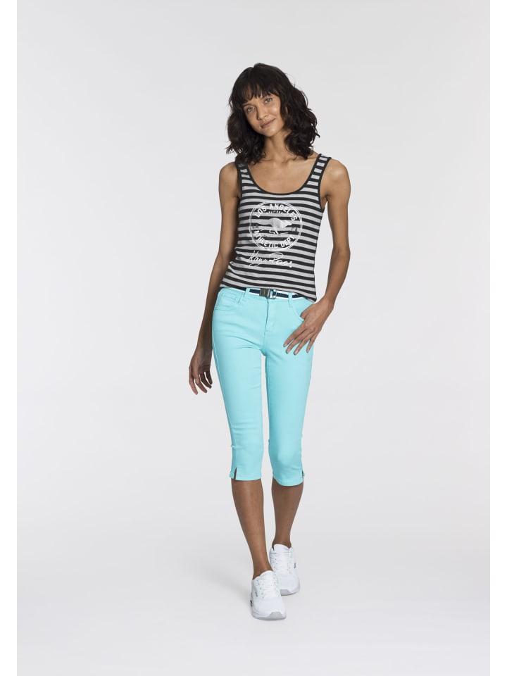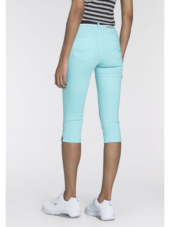 Универсальные женские джинсы-капри от KangaROOS. Очень узкие штанины и стандартная посадка. Фирменная этикетка на внутренней стороне. Предлагают множество вариантов комбинирования, от удобных до стильных. Прочный и прочный деним обеспечивает долговечность этих брюк. В комплекте отдельный ремень.