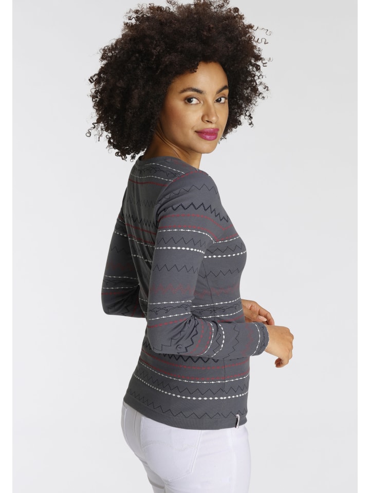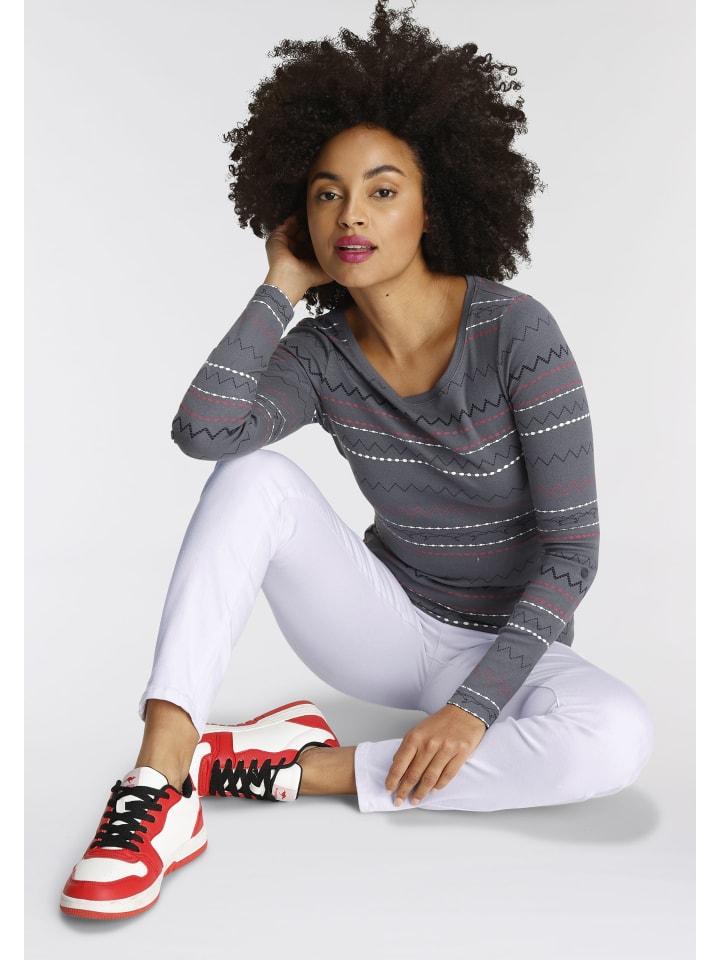- Рубашка с длинными рукавами и динамичным зигзагообразным узором для освежающих акцентов.