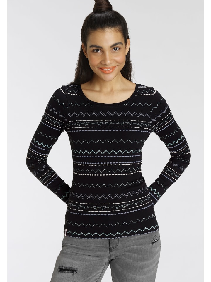 - Рубашка с длинными рукавами и динамичным зигзагообразным узором для освежающих акцентов.