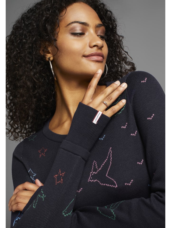 Классический женский свитер с круглым вырезом от KangaROOS. Облегающий крой, закрывающий бедра. Длинные рукава. Вязаный верх согревает и обеспечивает высокий уровень комфорта.