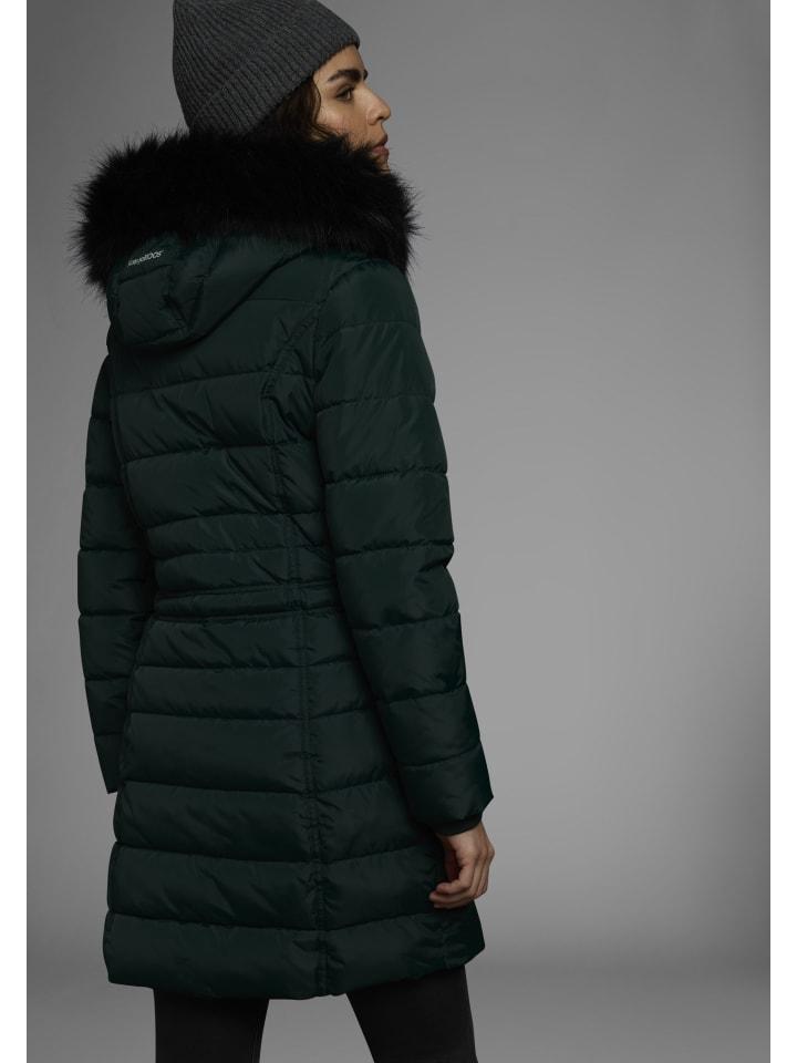 - Капюшон с мягким искусственным мехом и шнурком для дополнительного комфорта