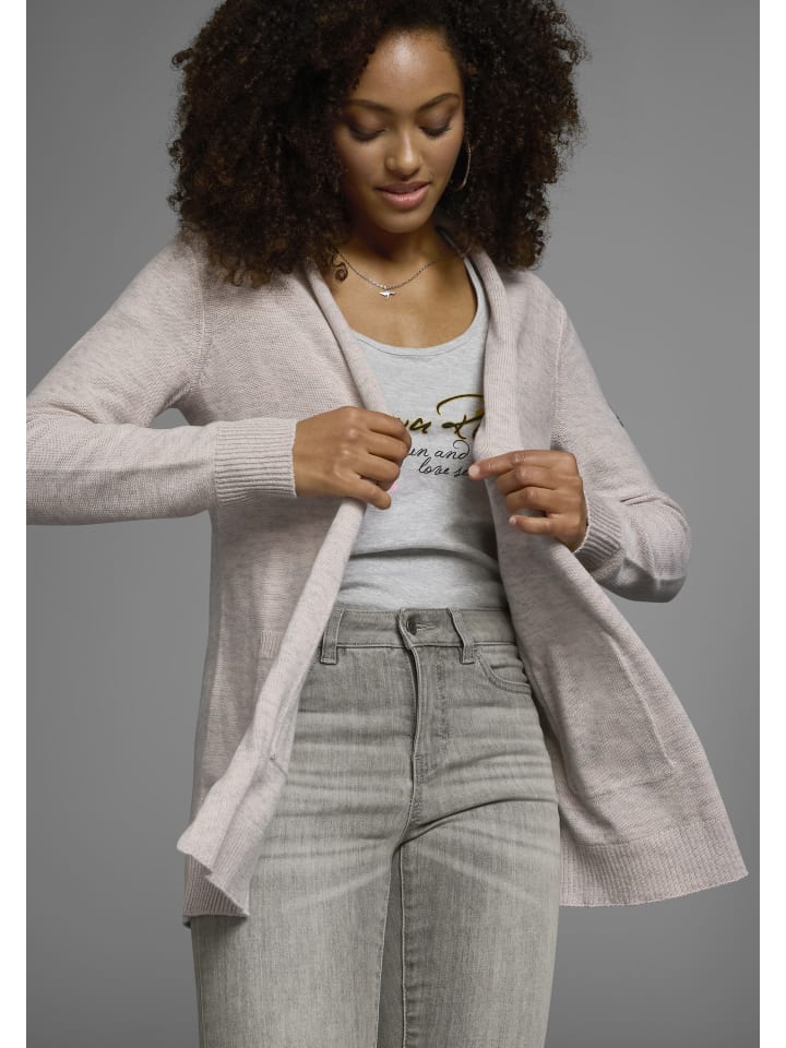 Меланжевый кардиган KangaROOS пригодится вам даже в холодную погоду. Кардиган с шалевым воротником прикрывает бедра и имеет слегка свободный крой. Длинные рукава и торс отделаны резинкой на манжетах. Карман вмещает ценные вещи, которые вы хотите взять с собой в дорогу. Кардиган очень удобный и теплый. Он дополнит классический образ для офиса или уютного отдыха на диване.