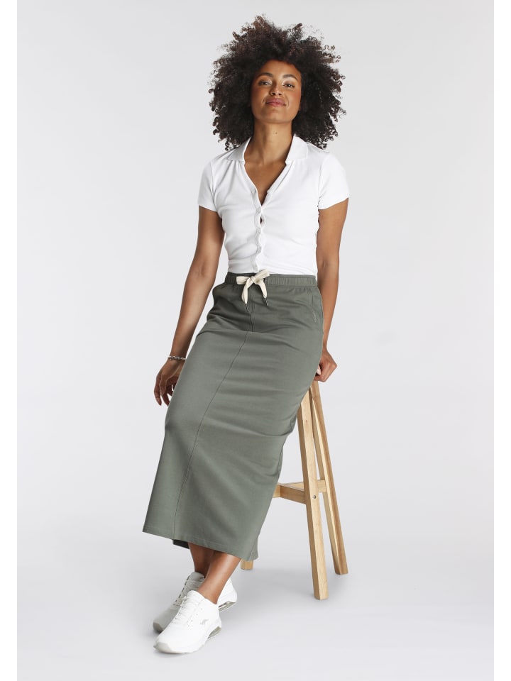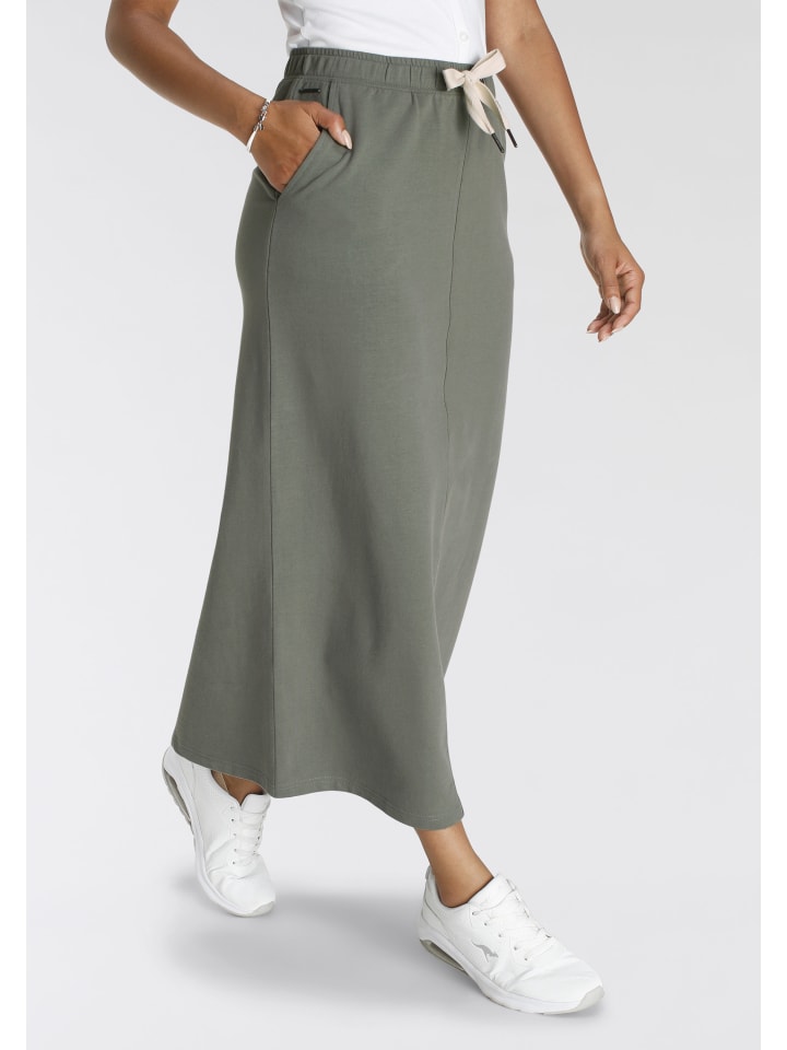 Элегантность или комфорт? С этой юбкой-свитшотом от KangaROOS модницы найдут и то, и другое! Разрез сзади немного приоткрывает тело и является стильной изюминкой. Юбка имеет свободный крой и длину. Завязка на подоле надежно фиксирует юбку, не давая ей сползать. Эластичный и мягкий материал обеспечивает комфортную посадку.