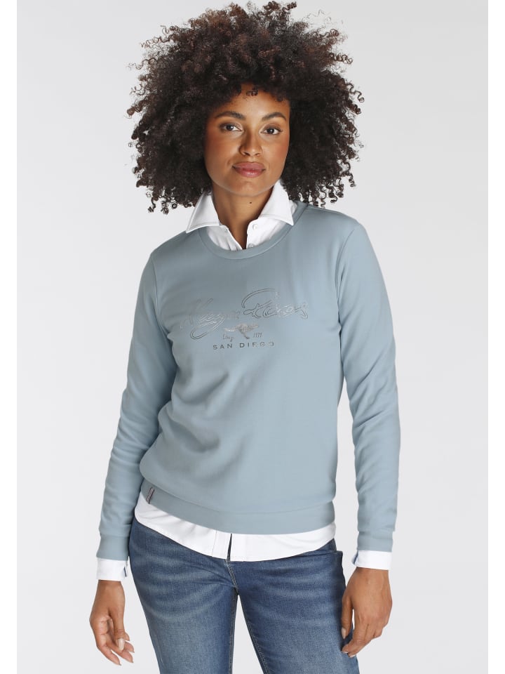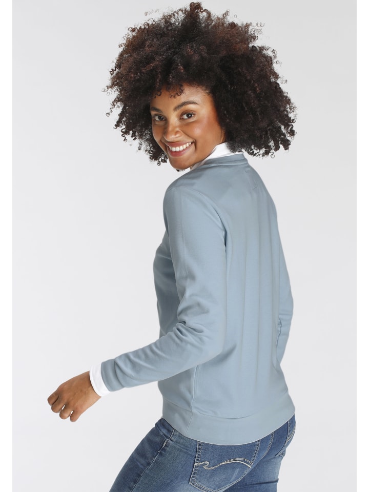 Простая женская толстовка от KangaROOS. Облегающий крой, закрывающий бедра. Длинные рукава. Мягкая ткань интерлок, сохраняющая форму, делает верх особенно комфортным.