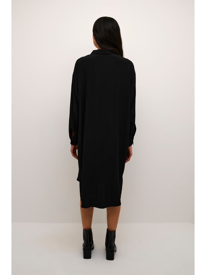 Это платье-рубашка прямого кроя с классическим воротником, потайной планкой на пуговицах и длинными рукавами с манжетами. Закругленный низ и свободный крой.