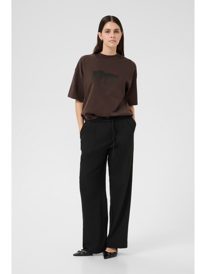 Футболка свободного кроя с эффектным принтом мазки кисти спереди. Классический круглый вырез горловины, спущенная линия плеча и рукава средней длины создают стильный образ.