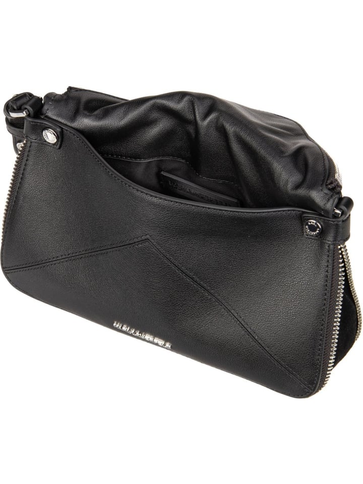 Уникальная сумка через плечо от Карла Лагерфельда из высококачественной коровьей кожи. Авангардный дизайн и роскошные детали делают ее стильным и эффектным аксессуаром.