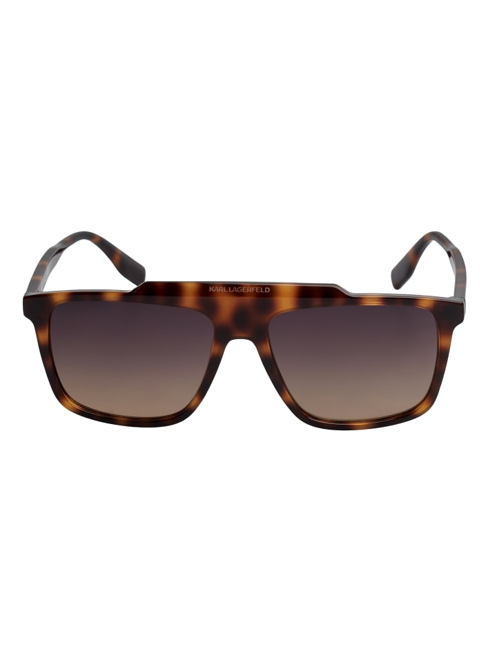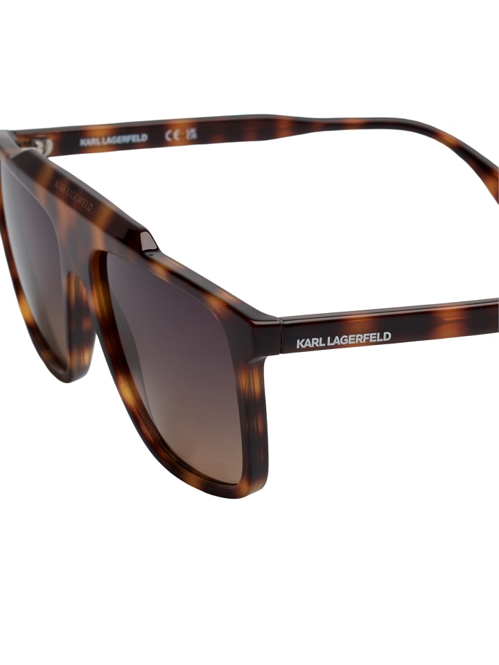 - Эти солнцезащитные очки от Karl Lagerfeld имеют прямоугольный силуэт со слегка закругленными краями и прямой оправой в верхней части.