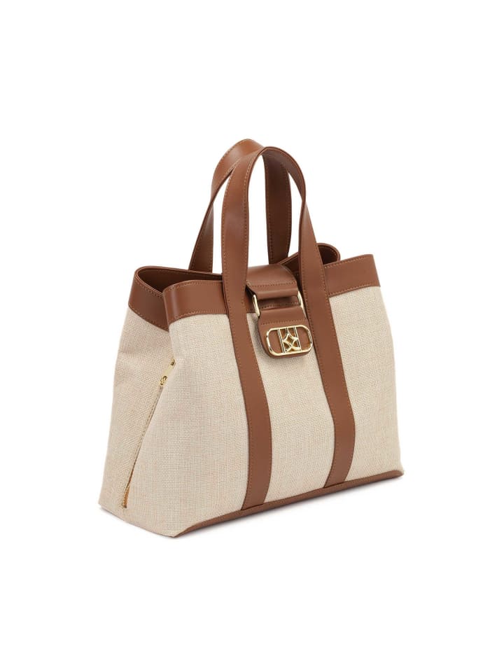 Небольшая бежево-коричневая сумочка из высококачественной ткани отличается универсальным и лаконичным дизайном, который отлично смотрится в любом положении. Функциональность и практичность модели дополняют два типа ручек, позволяющих держать ее в руке или носить на плече. Вставки из коричневой зернистой кожи разбавляют бежевую цветовую гамму и усиливают уязвимые места сумки, делая ее более устойчивой к механическим повреждениям.