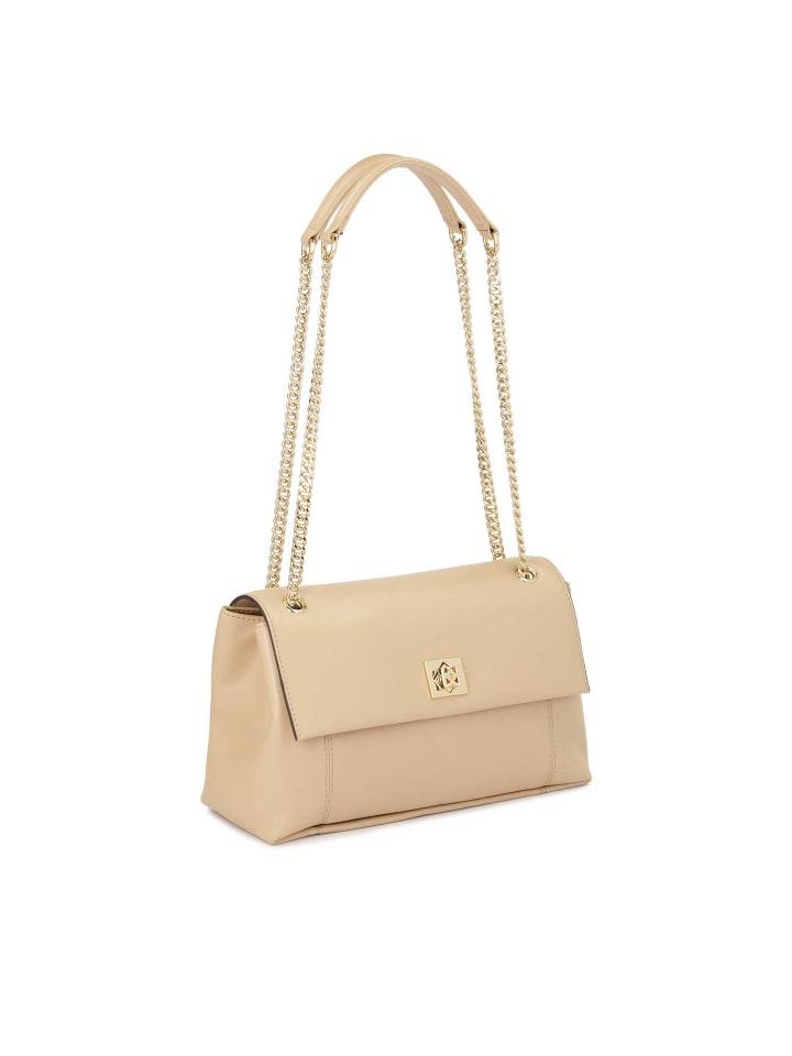 Эта бежевая сумка из высококачественной натуральной кожи - элегантный аксессуар, сочетающий в себе роскошный вид и функциональность. Теплая бежевая кожа придает сумке утонченный и вневременной характер, идеально дополняющий множество стилей - от повседневных до деловых. Сумка подвешена на элегантной цепочке, которая подчеркивает ее изысканное очарование. Цепочка дополнена бежевой кожаной вставкой, которая повышает комфорт, особенно при ношении на плече. Спереди расположен клапан с поворотным замком в форме монограммы KAZAR - элегантный, но сдержанный декоративный элемент, привлекающий внимание. Практичный и стильный выбор для различных случаев, она идеально сочетает в себе современность с классическими деталями, придавая сумочке уникальный и роскошный характер.
