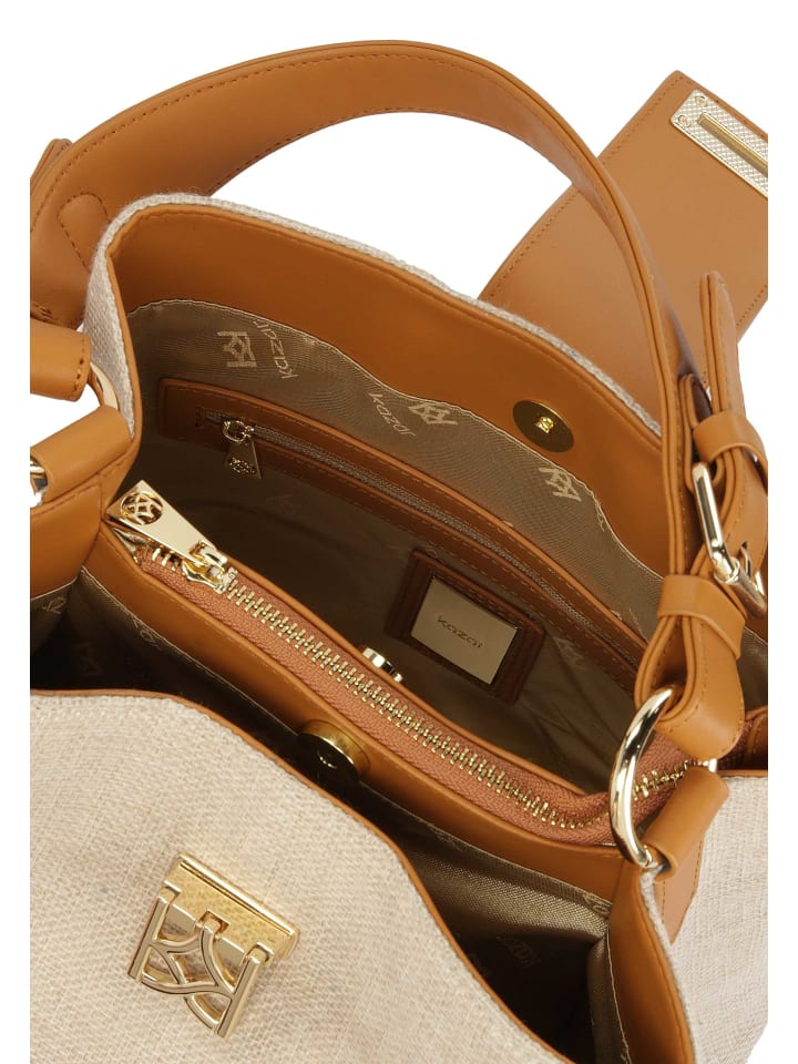 Эта элегантная сумка - изысканный и стильный аксессуар, сочетающий бежевый холст и светло-коричневую натуральную кожу. Контраст между фактурной тканью и гладкой кожей придает сумке уникальный характер, идеально соответствующий современным тенденциям. Ее элегантность подчеркивает золотистая монограмма - изящный, но роскошный декор, подчеркивающий ее изысканный стиль. Благодаря удобной ручке и съемному ремню сумку можно носить в руке или на плече, что позволяет адаптировать ее к различным случаям. Это идеальный выбор для тех, кто ценит элегантный дизайн и функциональность.