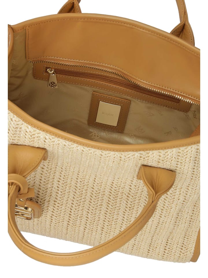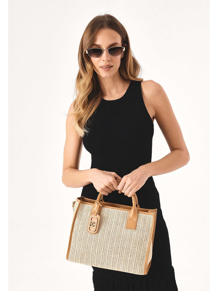 Благодаря своей правильной и жесткой форме сумка представляет собой элегантную модель, сочетающую в себе современный дизайн и функциональность. Изготовленная из бежевого синтетического материала с плетеным узором, она привлекает внимание своей текстурой и отличительным видом. Светло-коричневые элементы из натуральной кожи, такие как ремни, ручки и отделка, добавляют класс сумке и подчеркивают ее роскошный характер. Благодаря прочной конструкции сумка сохраняет свою форму и предлагает большую вместимость, идеально подходящую для повседневного использования. Стильный дизайн сумки-тоут делает эту сумку практичным и элегантным выбором, подходящим как для работы, так и для отдыха.