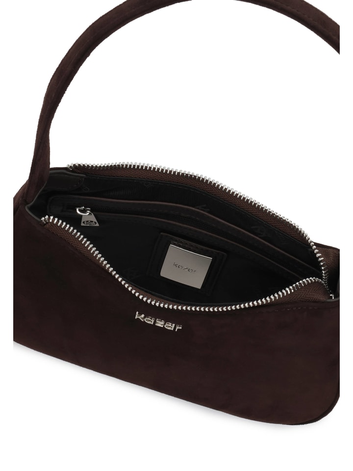Стильная сумка полукруглой формы из мягкой замши насыщенного коричневого оттенка. Минималистичная форма и плавные линии подчеркивают современный, но неподвластный времени характер модели. Сумка застегивается на серебристую молнию и впечатляет тонким контрастом между матовой поверхностью замши и блестящими металлическими деталями. Благодаря полужесткой округлой ручке сумка идеально сидит на плече, что делает ее удобной и практичной в повседневном использовании. Эта модель идеально подойдет женщинам, которые ценят элегантную простоту, высокое качество исполнения и классические аксессуары в современной интерпретации.