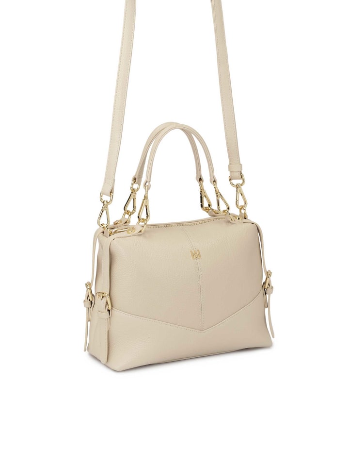 Эта практичная повседневная сумка кремового цвета из натуральной кожи станет идеальным аксессуаром для тех, кто ценит стиль и функциональность. Классический крой сочетает в себе минималистичную форму с тонкими деталями, создавая гармоничный дизайн, идеально подходящий для повседневного использования. Сумка имеет вместительное основное отделение с застежкой-молнией, обеспечивающее сохранность ваших вещей. Съемные ручки позволяют удобно носить сумку в руке, а длинный регулируемый ремень позволяет носить ее на плече или через плечо, адаптируя ее использование к вашим индивидуальным потребностям. Золотистые металлические элементы, такие как пряжки, карабины и фурнитура, придают сумке элегантность и легкий блеск. Эта сумка - универсальный аксессуар, сочетающий в себе повседневную практичность и вневременной стиль, что делает ее незаменимой частью любого гардероба.