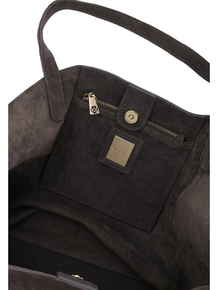 Эта современная сумка-шоппер из высококачественной замши насыщенного графитового цвета отличается минималистичным дизайном и плавными линиями, что делает ее идеальной для повседневного использования, сочетая в себе функциональность и утонченную элегантность. Длинные ручки обеспечивают удобную переноску на плече, а просторное внутреннее пространство легко вместит все необходимое - от документов до личных вещей. Золотой логотип спереди добавляет изысканности и гармонично контрастирует с прохладными графитовыми тонами. Отличный выбор для женщин, которые ценят сдержанный стиль, высокое качество изготовления и неподвластные времени аксессуары.
