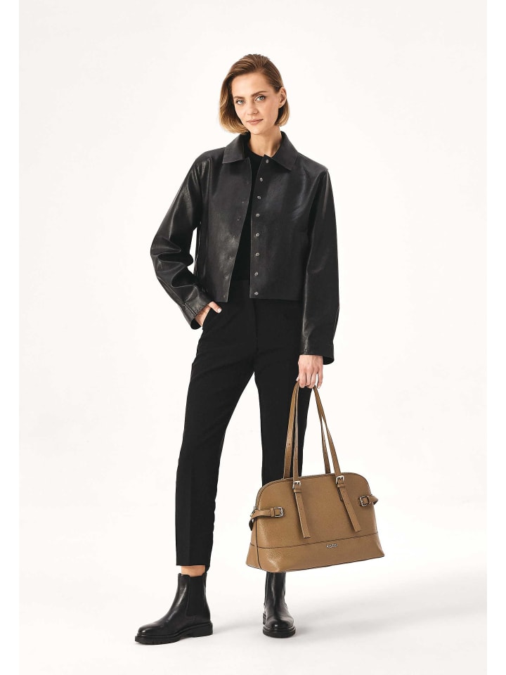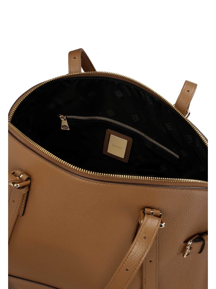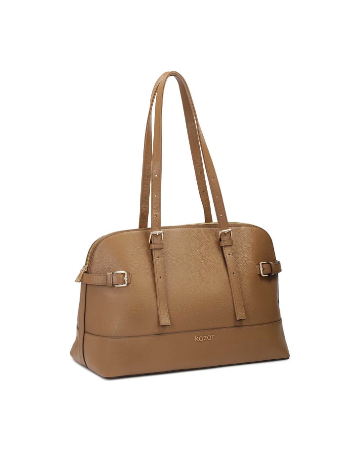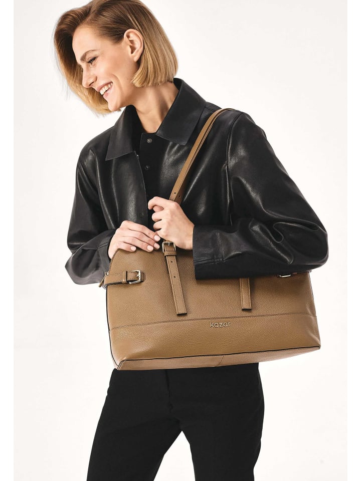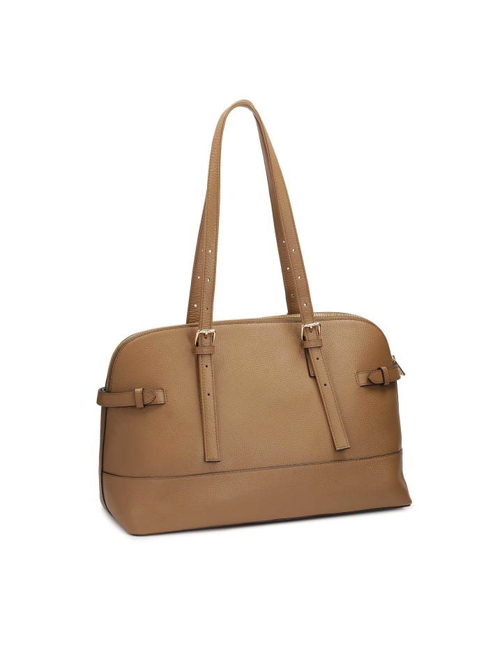 Эта светло-коричневая сумка из натуральной кожи сочетает в себе функциональность и стиль. Привлекательная форма с широким жестким основанием обеспечивает устойчивость и позволяет легко размещать сумку на различных поверхностях. Закругленные углы смягчают силуэт и придают ей современный и удобный вид. Ручки-ремни регулируются по длине для удобной переноски. Эта сумка подойдет как для повседневного использования, так и для особых случаев благодаря элегантному цвету и высококачественной коже, которая со временем приобретает характерный вид.