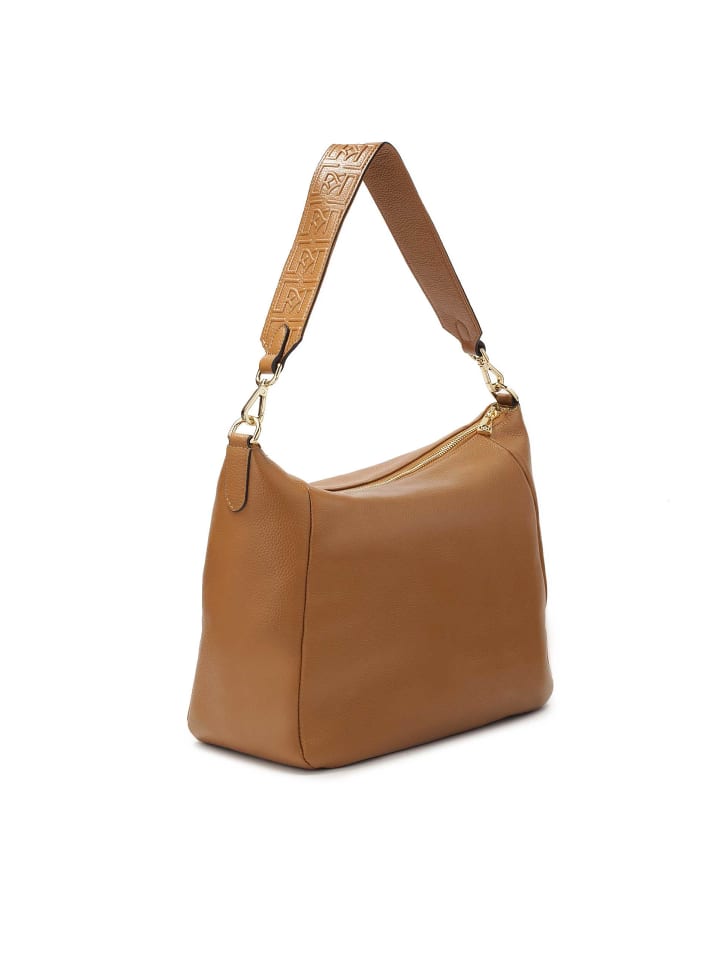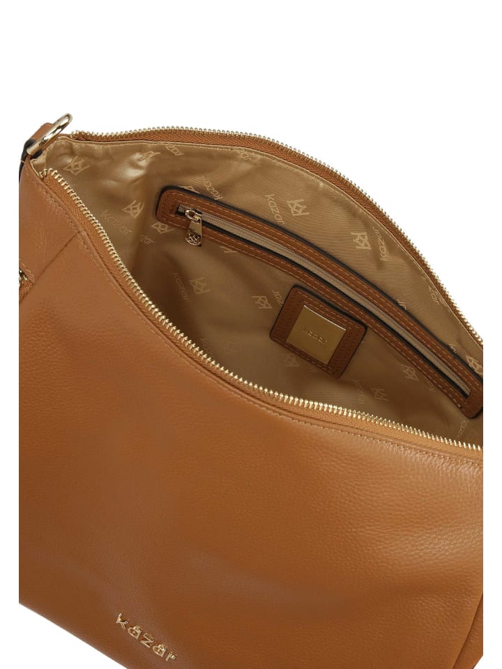 Сумка светло-коричневого оттенка со свободным кроем идеально подходит как для повседневных, так и для элегантных образов. Высококачественная мягкая натуральная кожа придает ей удобный и стильный вид. Сумка подвешивается на широкий съемный плечевой ремень, украшенный тиснеными монограммами KAZAR, для удобной переноски и стильного образа. Вместительное внутреннее пространство сумки предлагает место для всех ваших необходимых вещей, что делает ее одновременно практичной и элегантной. Она идеально подходит для повседневного использования и добавит индивидуальности любому образу.