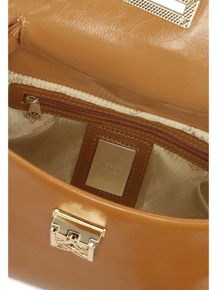 Эта сумка классического элегантного дизайна из высококачественной светло-коричневой натуральной кожи отличается вниманием к деталям и стильным внешним видом. Клапан сумки украшен металлической застежкой в виде монограммы KAZAR, придающей ей изысканный вид. Сумка имеет прочную ручку для удобной переноски. Она подходит как для повседневного использования, так и для особых случаев.