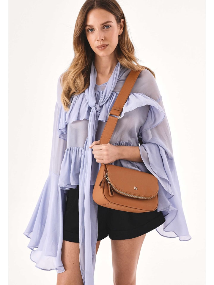 Эта светло-коричневая сумочка из высококачественной натуральной кожи - элегантный и функциональный аксессуар, сочетающий в себе классический стиль и современные нотки. Прочная конструкция обеспечивает долговечность и сохранение формы, что придает сумочке изысканный вид и делает ее аккуратной и элегантной. Клапан сумки оснащен дополнительным практичным отделением, закрывающимся на двухштифтовую молнию, что позволяет удобно хранить мелкие предметы и быстро получать доступ к необходимым. Сумка оснащена широким регулируемым ремнем для удобной переноски и настраиваемой длины, что делает ее одновременно стильной и удобной для ношения. Небольшая монограмма бренда скромно размещена на передней части сумки, придавая ей престижный и роскошный вид, а также служа ненавязчивым украшением. Светло-коричневый цвет кожи добавляет сумочке тепла и универсальности, делая ее идеальным дополнением к различным стилям, как повседневным, так и официальным. Сумка идеально подходит для повседневного использования и добавит элегантности и стиля любому образу.