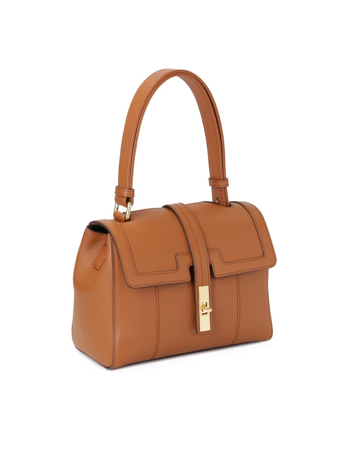 Эта сумка из натуральной кожи классического коричневого оттенка - изысканный аксессуар, сочетающий элегантность с современным дизайном. Уникальный дизайн клапана со специальным отверстием для ремешка создает уникальный и стильный образ. Металлические детали золотистого цвета, такие как элегантная застежка и декоративная полоска, добавляют роскошный штрих и подчеркивают эксклюзивный вид. Регулируемая ручка обеспечивает комфорт и универсальность, поскольку сумку можно носить в руке или на плече. Благодаря тщательному мастерству и высококачественным материалам эта модель идеально дополняет элегантные и классические стили, добавляя нотку современного шика.