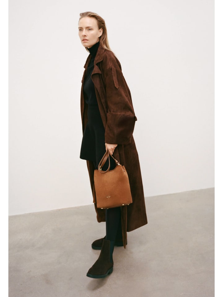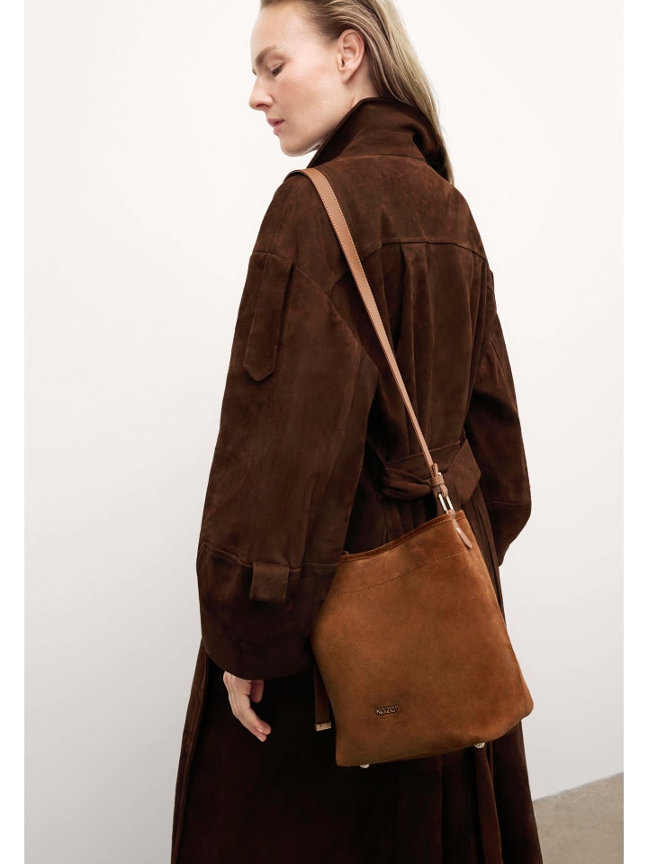 Эта стильная и невероятно мягкая сумка-хобо из светло-коричневой замши - идеальный выбор для женщин, которые ценят сочетание повседневного стиля и элегантности. Ее свободная, слегка закругленная форма идеально облегает тело, создавая естественный и непринужденный образ. Универсальный карамельно-коричневый цвет делает сумку идеальным дополнением к осенне-весеннему образу. Благодаря регулируемой ручке сумку удобно носить в руке или на плече, в зависимости от потребностей.