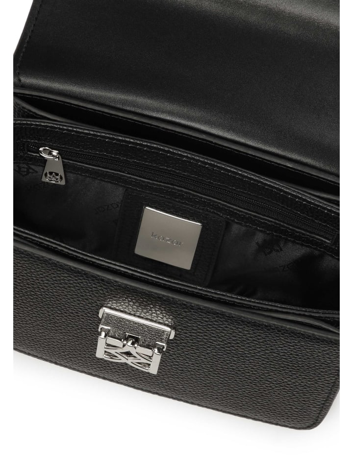 Эта небольшая сумочка из натуральной кожи черного цвета поражает своей элегантностью и точным мастерством. Ее жесткая, правильная форма придает ей классический характер, а ее минималистичный дизайн подчеркивает ее универсальность. Клапан, который закрывается декоративной серебряной застежкой, добавляет изысканный штрих и сочетает функциональность с эстетикой. Безупречное мастерство, с тонкой строчкой и металлическими элементами, создает гармоничное целое. Ручка, тщательно подобранная к пропорциям сумки, обеспечивает удобное ношение и подчеркивает ее вневременной стиль. Идеальный аксессуар для ценителей изысканной простоты.