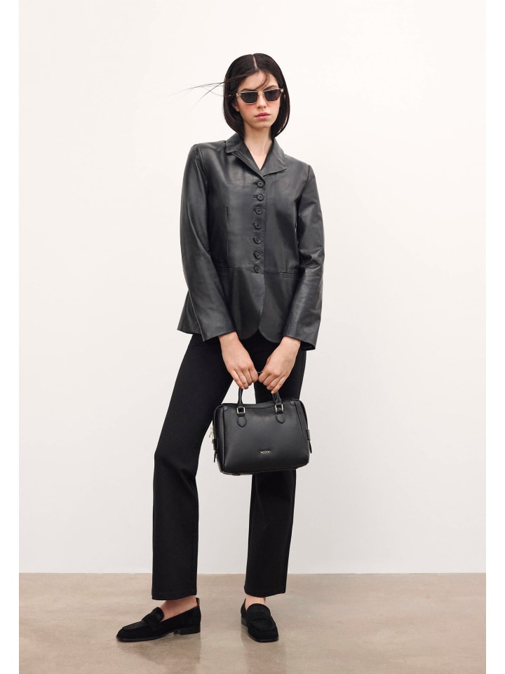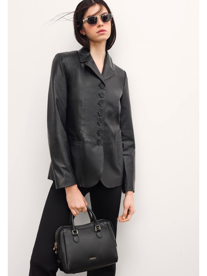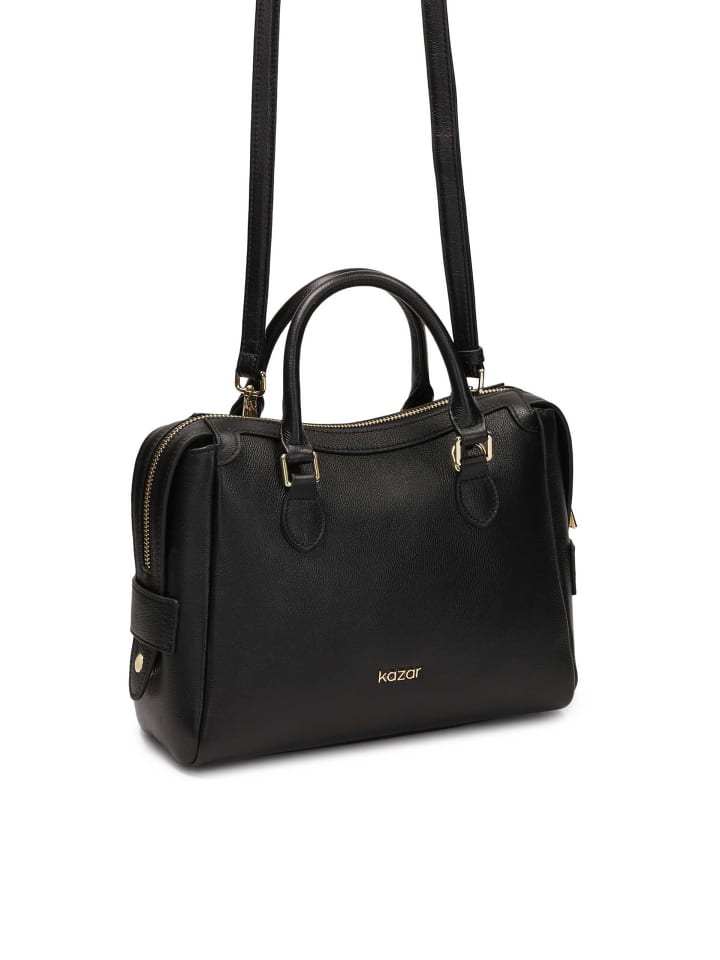 Классическая и элегантная сумка из высококачественной натуральной кожи в классическом черном цвете. Модель отличается жесткой конструкцией, которая прекрасно держит форму и придает всей сумке шикарный характер. Сумка имеет две удобные ручки для переноски в руке и съемный регулируемый ремень, который позволяет носить ее на плече. Передняя часть украшена тонким золотым логотипом KAZAR, а все изделие дополняет элегантная золотая фурнитура. Это идеальный выбор как для повседневной носки, так и для более официальных нарядов.