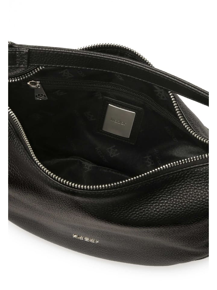 Эта черная сумка из натуральной кожи сочетает в себе элегантность и повседневный комфорт. Ее полукруглая, мягкая форма придает ей современный и универсальный характер, идеально подходящий к самым разным стилям - как повседневным, так и более элегантным. Сумка оснащена двумя видами ручек: коротким кожаным ремешком для ношения в руке и длинным регулируемым плечевым ремнем для удобного ношения на плече. Серебристые металлические элементы, включая стильную фурнитуру и ненавязчивый логотип бренда, добавляют изысканности. Практичная застежка-молния обеспечивает безопасность ваших вещей, а просторное внутреннее пространство легко вместит ваши повседневные принадлежности. Неподвластный времени аксессуар для женщин, которые ценят классику, функциональность и высокое качество изготовления.