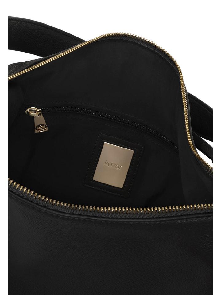 Классическая и вневременная женская сумка в форме полумесяца из высококачественной натуральной кожи с мелкой зернистостью. Изящный логотип KAZAR спереди добавляет элегантности, а детали из золотистого металла добавляют изысканности. Модель оснащена двумя ремнями: короткой удобной ручкой для ношения на плече и длинным, регулируемым и съемным ремнем, который позволяет носить сумку через плечо или на плече. Сумка застегивается на молнию, обеспечивая безопасность и комфорт. Идеальный выбор для женщин, которые ценят классику в современной интерпретации.