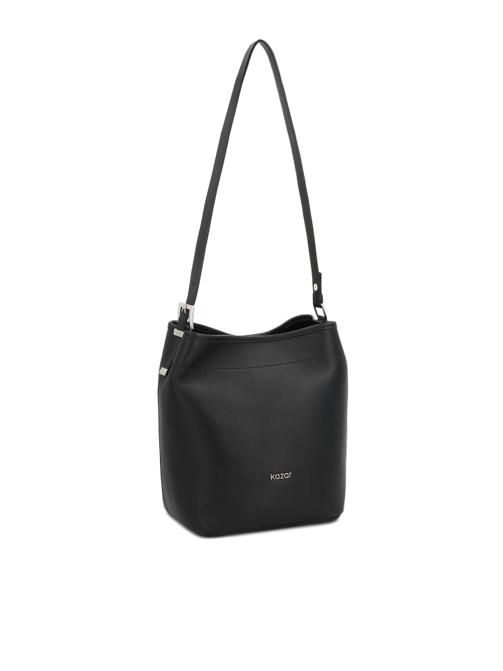 Эта черная сумка из гладкой натуральной кожи - воплощение классической элегантности в современной интерпретации. Ее слегка закругленная форма и простой дизайн делают ее чрезвычайно универсальной - она подойдет как к повседневным, так и к более официальным нарядам. Серебристый логотип KAZAR спереди добавляет роскошный акцент, а широкий регулируемый плечевой ремень обеспечивает удобную переноску и позволяет индивидуально регулировать длину. Тщательно проработанные детали и высококачественная натуральная кожа гарантируют долговечность и вневременной стиль. Предложение для женщин, которые ценят элегантность в утонченном и практичном проявлении - сумка, которой не нужны излишества, чтобы выделиться.