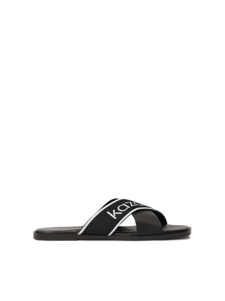 Эти практичные мюли на плоской подошве гармонично сочетают в себе минимализм и современный дизайн, созданные для тех, кто ценит стиль и комфорт в повседневной жизни. Их уникальный характер подчеркивают два перекрещивающихся ремешка: один из высококачественной черной натуральной кожи, обеспечивающий прочность и классический вид, а другой, украшенный синтетической полосой с эффектным белым логотипом, придает мюлям динамичный и модный штрих. Квадратный носок придает модели современный вид. Благодаря плоской подошве мюли обеспечивают максимальный комфорт и идеально подходят для летнего образа - как повседневного, так и элегантного.