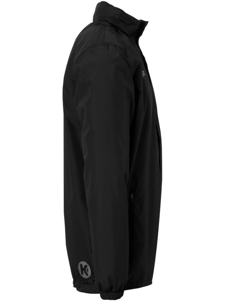 Бирка с именем на внутренней стороне воротника - Воротник-стойка с убирающимся капюшоном - Светоотражающие принты Kempa - Проклеенные швы - 1000 мм водяного столба - Боковые карманы на молнии - Эластичные манжеты на рукавах - Регулируемый подол на шнурке