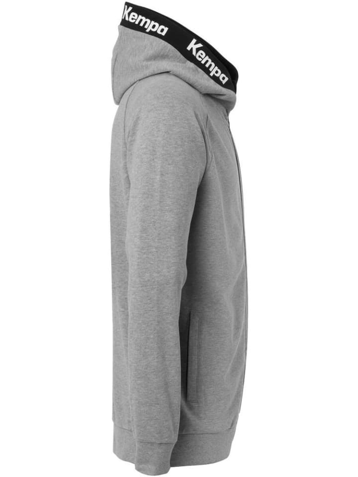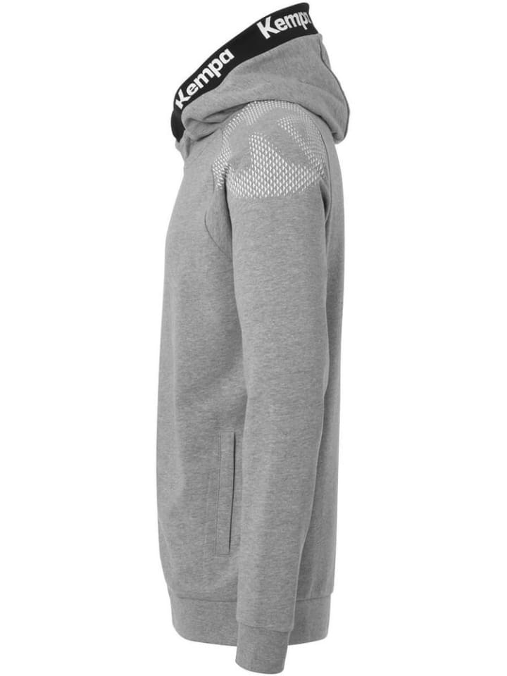 Капюшон с надписью Kempa и контрастной подкладкой - Застежка-молния на воротнике - Рукава реглан - Основной принт на левом плече - Два кармана на молнии - Молнии контрастного цвета 85% хлопок (органический), 15% вискоза