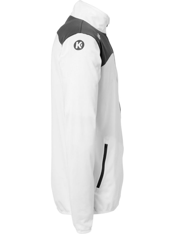 Технически продуманный дизайн спереди и сзади - Боковые карманы на молнии - Кант на рукавах и поясе - Вышитая надпись Kempa и принты K-Label Материал: 100% полиэстер