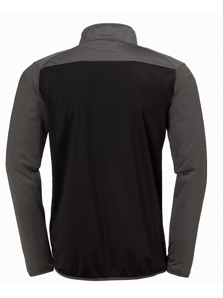 КУРТКА Kempa PRIME POLY черного цвета, для взрослых и детей, спортивные рукава реглан, боковые карманы на молнии, кант на рукавах и поясе. Купить сейчас!