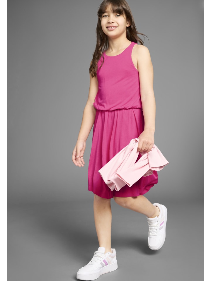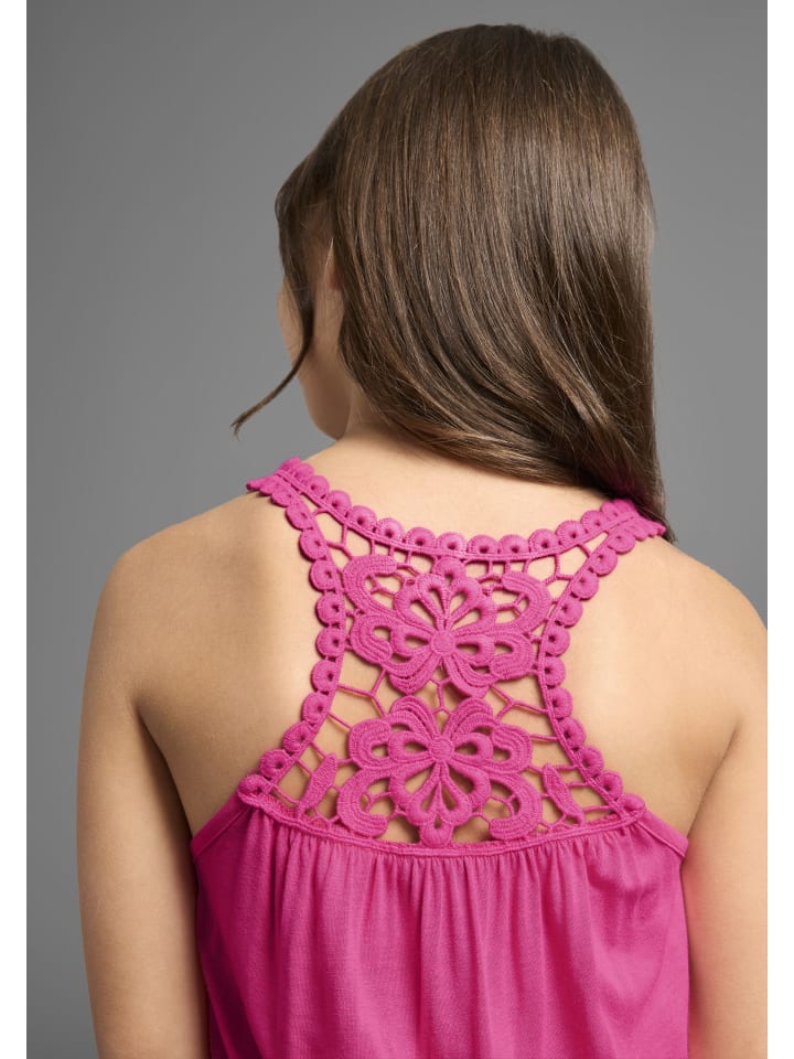 - Круглый вырез и без рукавов - идеально для теплых дней.