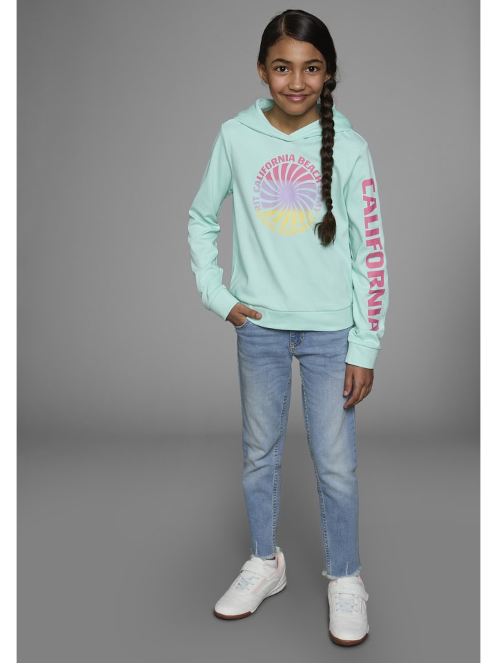 Модная толстовка с капюшоном от KIDSWORLD с принтованными акцентами. Прямой крой, прикрывающий талию. Длинные рукава. Верх из прочной ткани интерлок обеспечивает комфорт и комфорт.