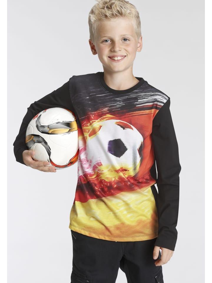 Спортивная футболка с длинными рукавами от KIDSWORLD с принтом. Классический крой. Особенно подходит для футбола и турниров. Верх обеспечивает полную свободу движений благодаря эластичному и мягкому одинарному джерси.