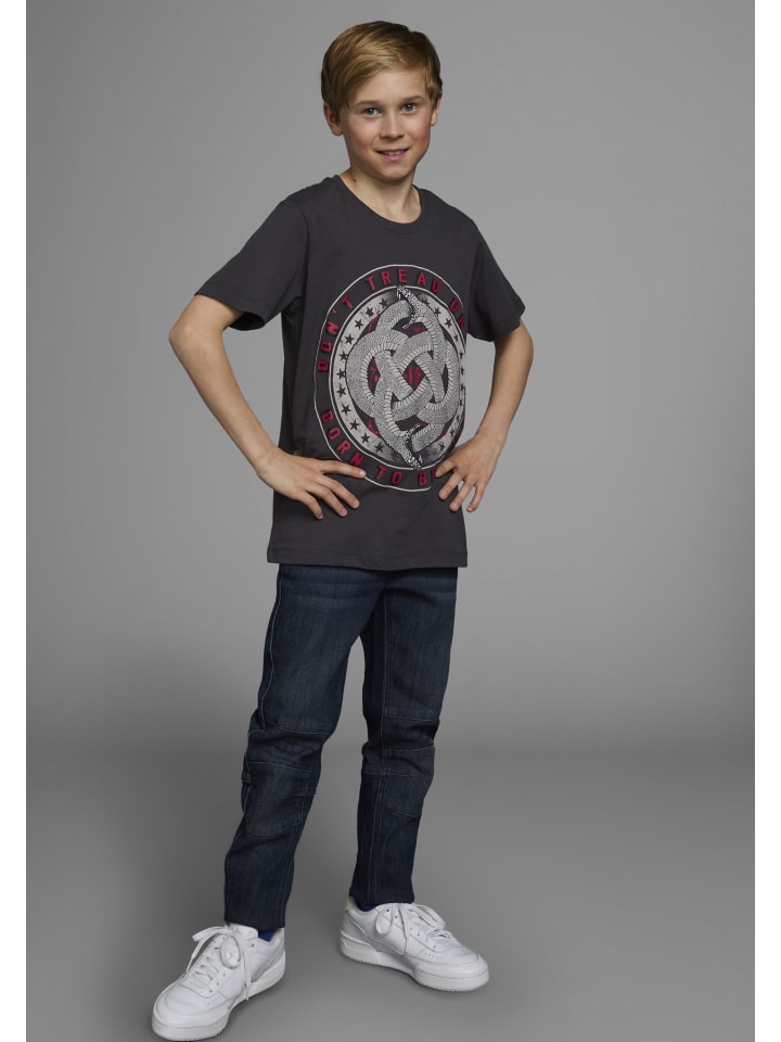 Модная футболка от KIDSWORLD. Классический крой и стильный принт. Верх из гладкого трикотажа обеспечивает комфорт и свободу движений.