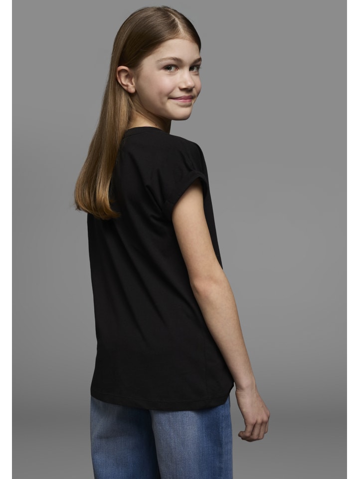 Эта модная футболка от KIDSWORLD украшена принтами. Широкий крой, прикрывающий бедра, позволяет создавать модные и универсальные образы. Верх удобен в носке благодаря мягкому трикотажному полотну.
