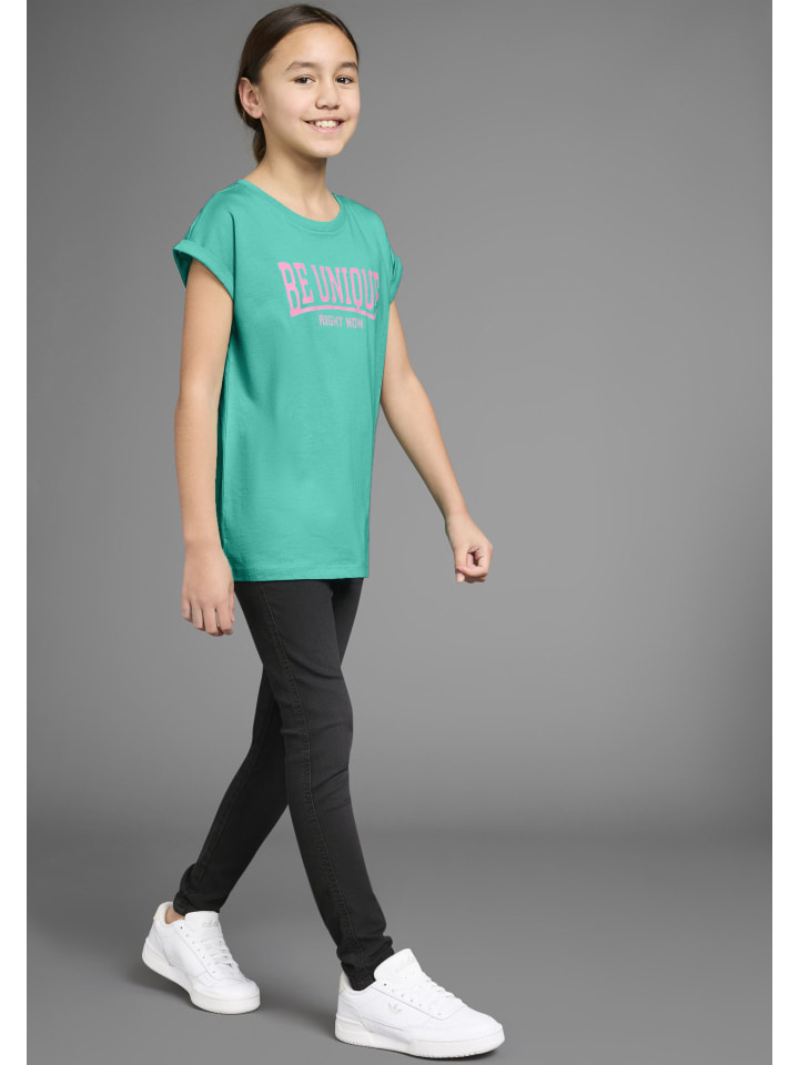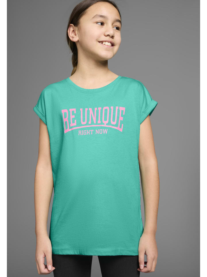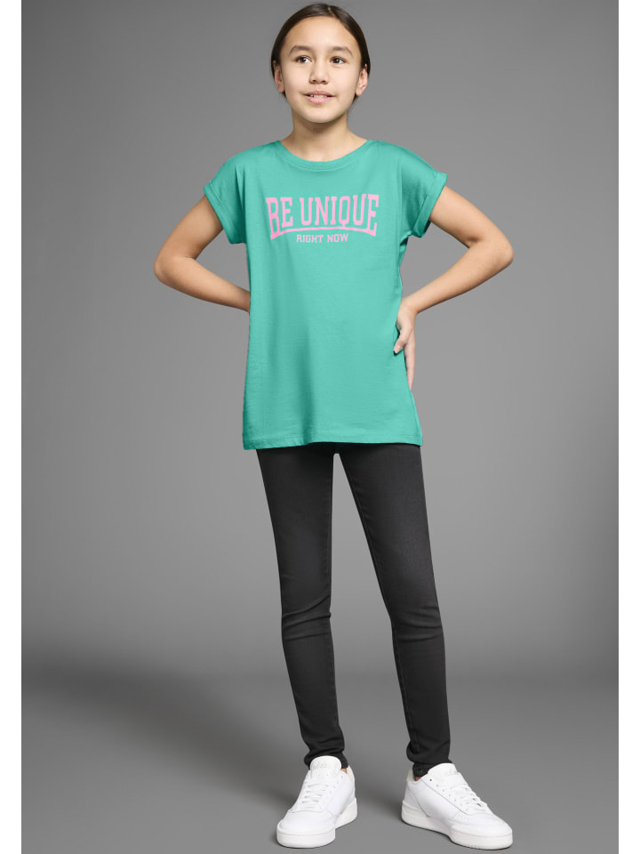 Модная футболка от KIDSWORLD с принтом. Свободный крой и облегающая спина обеспечивают комфортный и стильный образ. Верх футболки плавно облегает фигуру благодаря эластичному трикотажу.