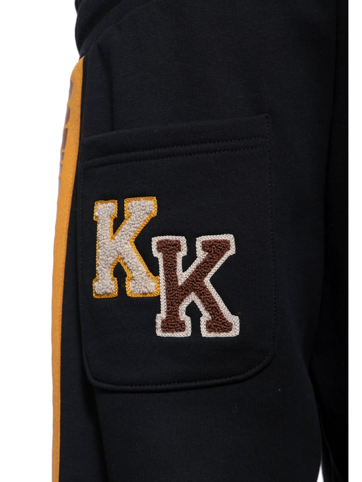 Джоггеры King Kerosin сочетают в себе спортивный комфорт и яркие детали в студенческом стиле. Широкая тесьма с надписью Natural Born Badass по бокам привлекает внимание. Изысканная вышивка шениллом с логотипом KK на заднем кармане служит ярким акцентом. Эластичные манжеты, практичные карманы и пояс на шнурке дополняют дизайн. Дома или в дороге - в этих брюках вы всегда будете выглядеть уверенно! Также доступна подходящая студенческая куртка с капюшоном!