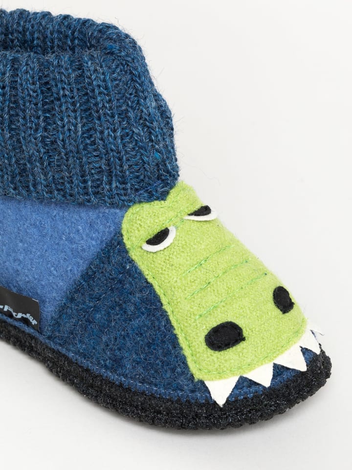 Наши тапочки из крокодиловой кожи, особенно детские, - настоящая находка для всех маленьких любителей животных. Они впечатляют своим уникальным дизайном и войлочной подошвой, пропитанной латексом. Мягкие трикотажные манжеты позволяют быстро надевать и снимать их, обеспечивая при этом достаточную поддержку для игр. Верх из 100% чистой шерсти, полученной из нашей собственной валяной шерсти, обеспечивает тепло и комфорт для детских ножек. Можно стирать в стиральной машине при температуре 30°C.