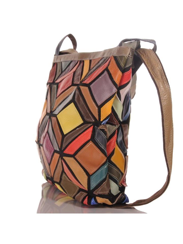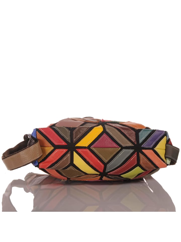 Эта женская сумка через плечо из натуральной кожи сочетает в себе уникальный дизайн и высокое качество изготовления. Красочный пэчворк рисунок делает каждую сумку уникальной и придает вашему образу индивидуальный штрих.