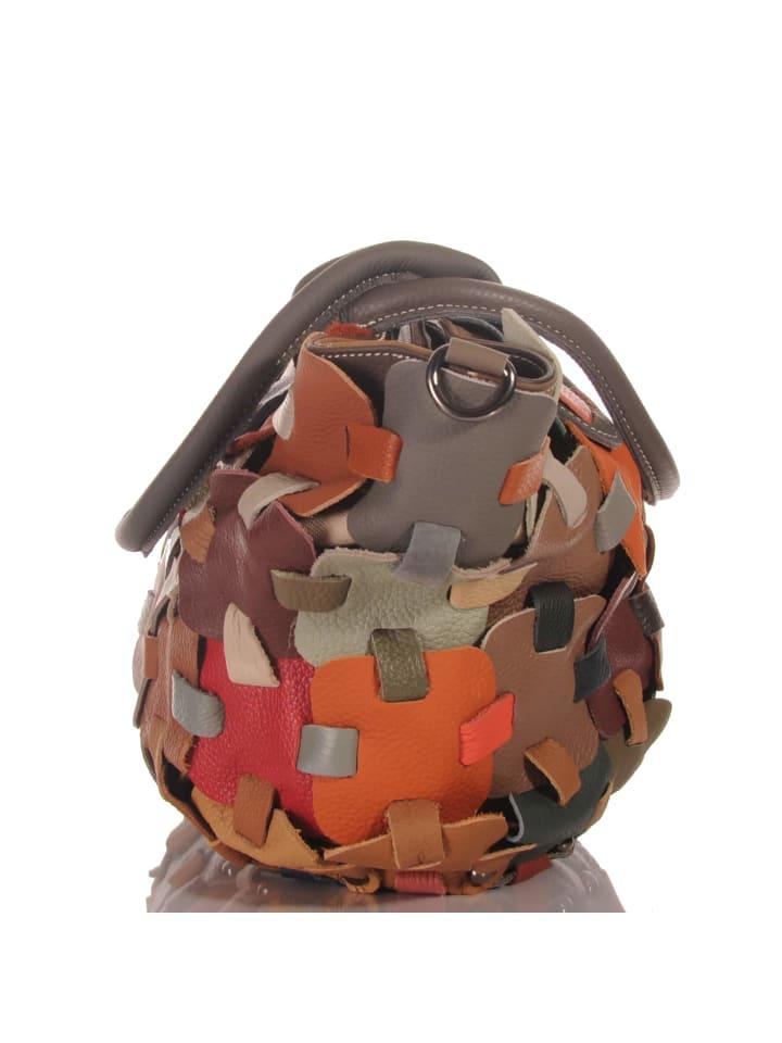 Женская кожаная сумка-шоппер - стильная лоскутная сумка из натуральной кожи
