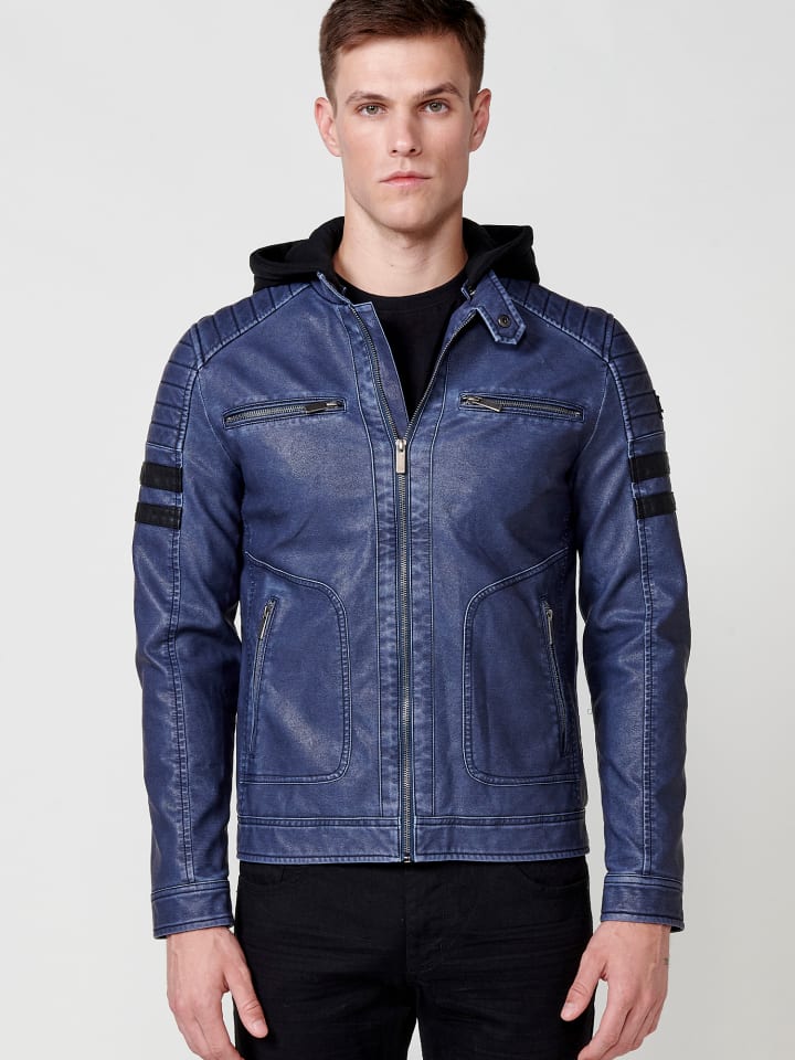 Куртка из искусственной кожи со съемным капюшоном и воротником. Застежка-молния спереди. Состав: 100% полиэстер